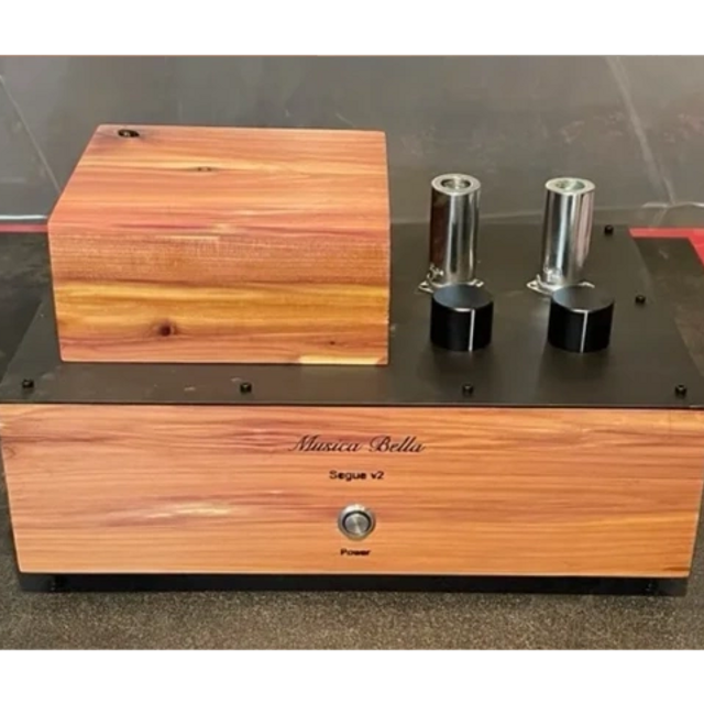 1- Musica Bella Segue v2 basic in Padauk chassis. 12AU7/12AT7. Non remote. 2 SE input, 2 SE outputs, 1 bypass. $695